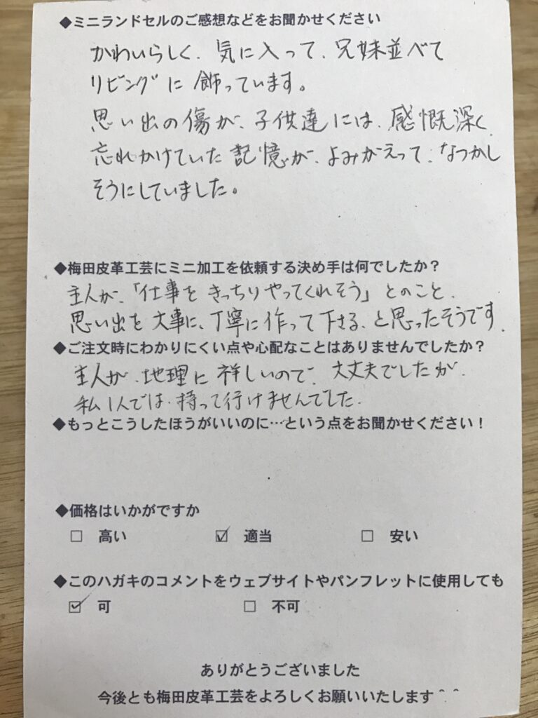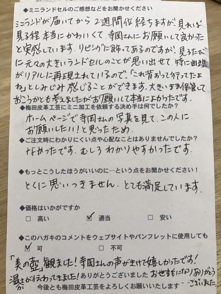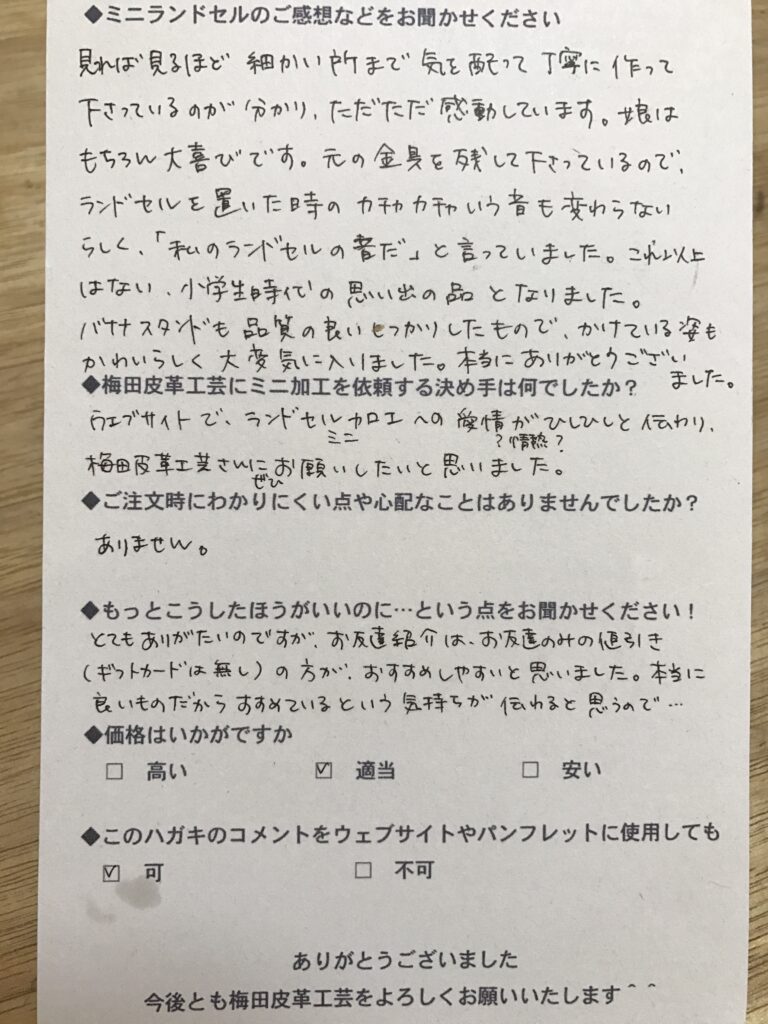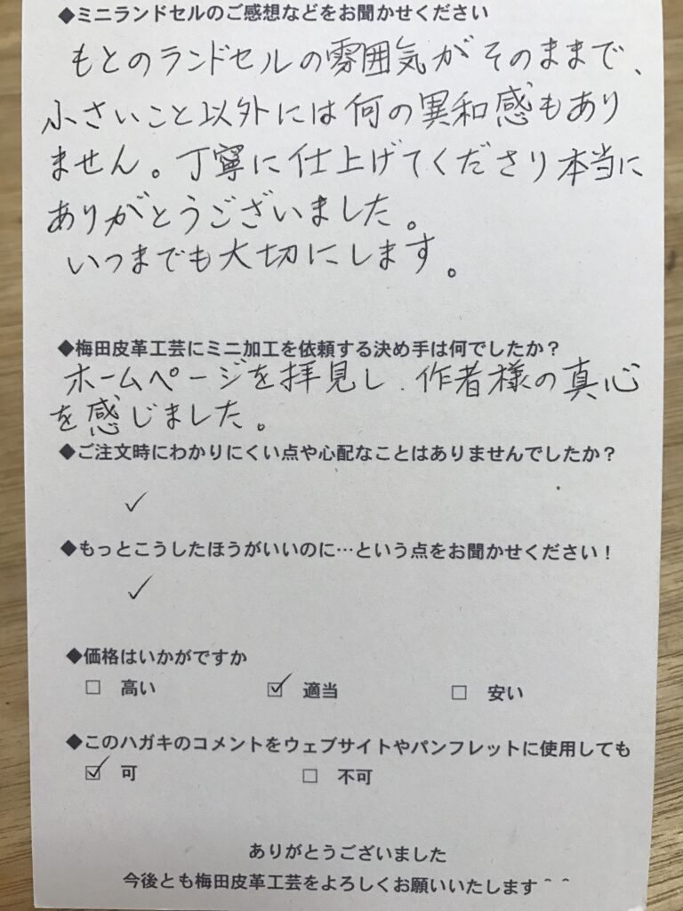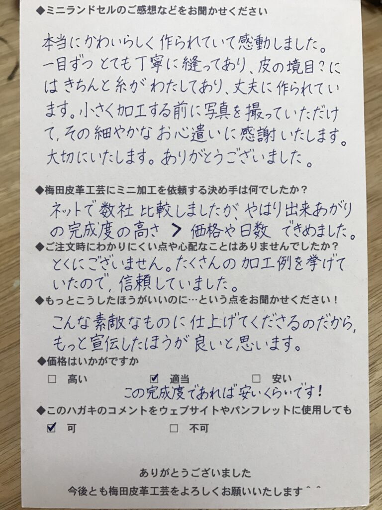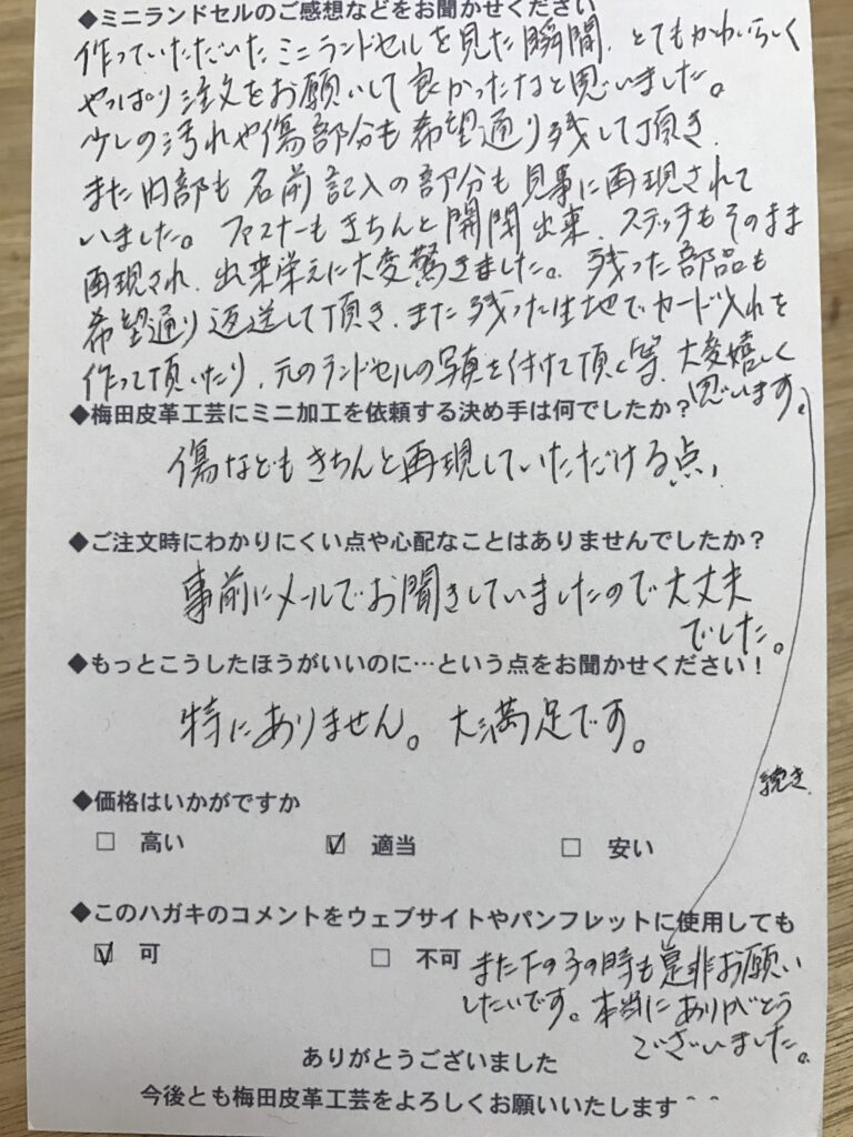 ランドセルリメイク専門店「ミニランドセル梅田皮革工芸」は