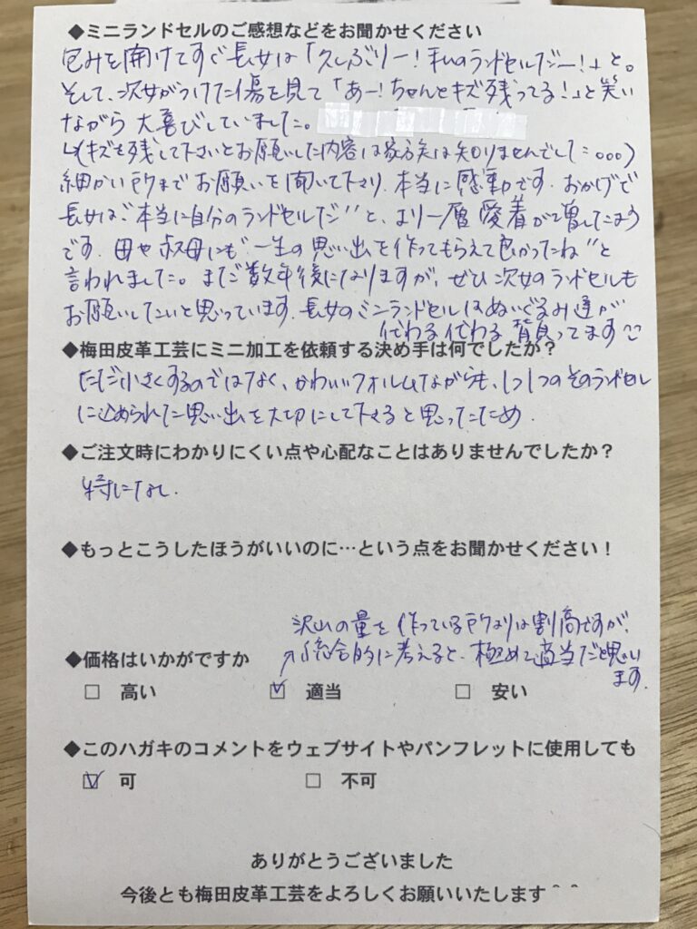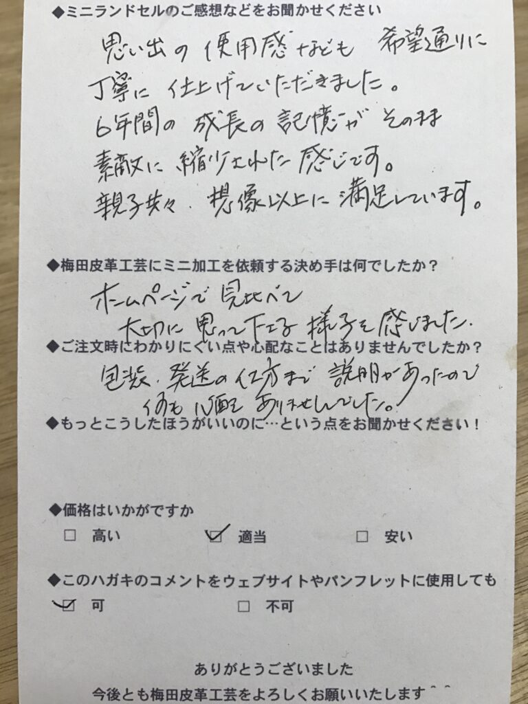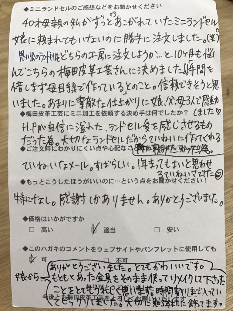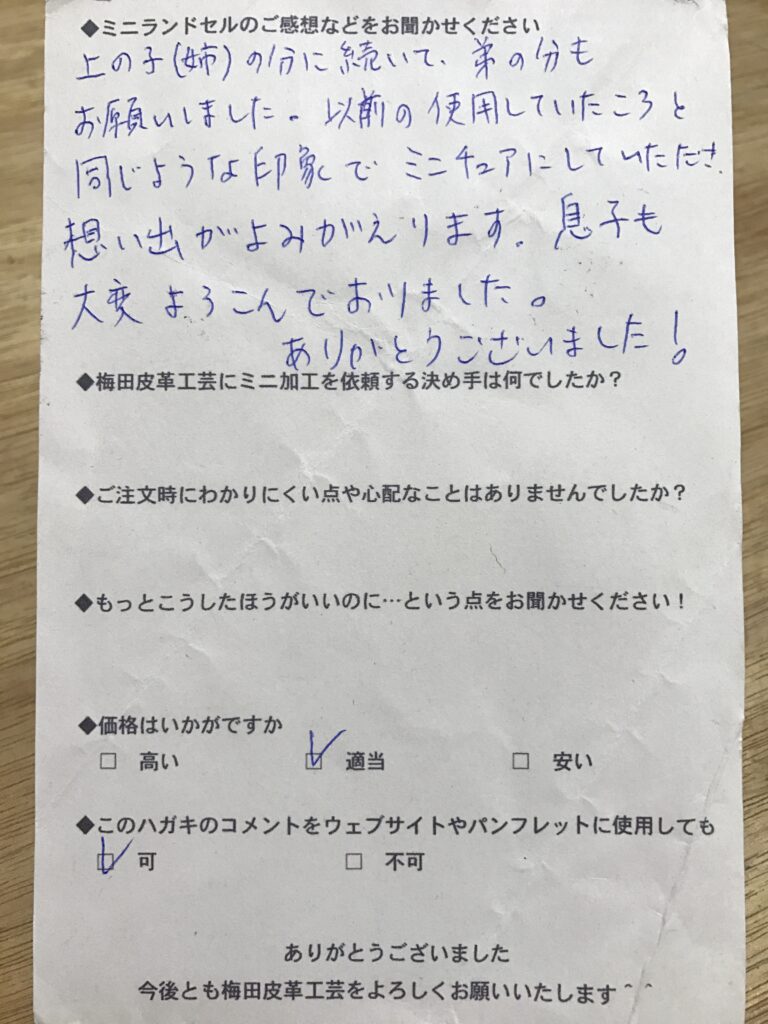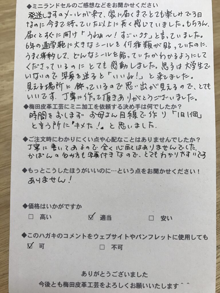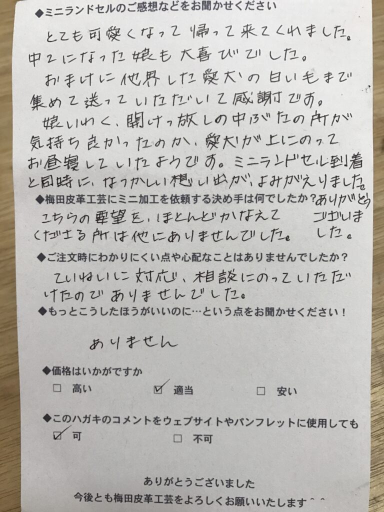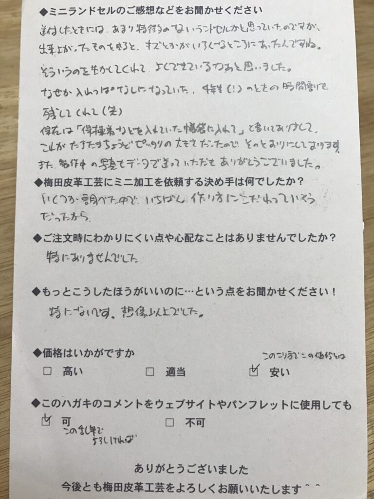 ランドセルリメイク専門店「ミニランドセル梅田皮革工芸」は
